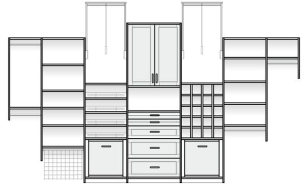 Планируя гардероб, начинайте разбивать площадь по принципу «больше - меньше», а именно определитесь с местом под высокие секции, а остальные составляющие комнаты распределите под полки, модули и ящики.
