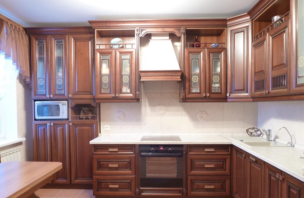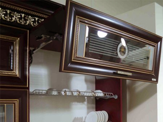 Центральная часть фасадов коллекции выполнена из МДФ, облицованной шпоном черешни. Для рамки использована красная ольха (Red Alder), а завершает отделку тонирование с искусственным старением и глянцевым лакированием. Благодаря такой многоступенчатой обработке сегодня вы можете купить фасады в СПб в оригинальном оформлении, созданные из лучших древесных пород.